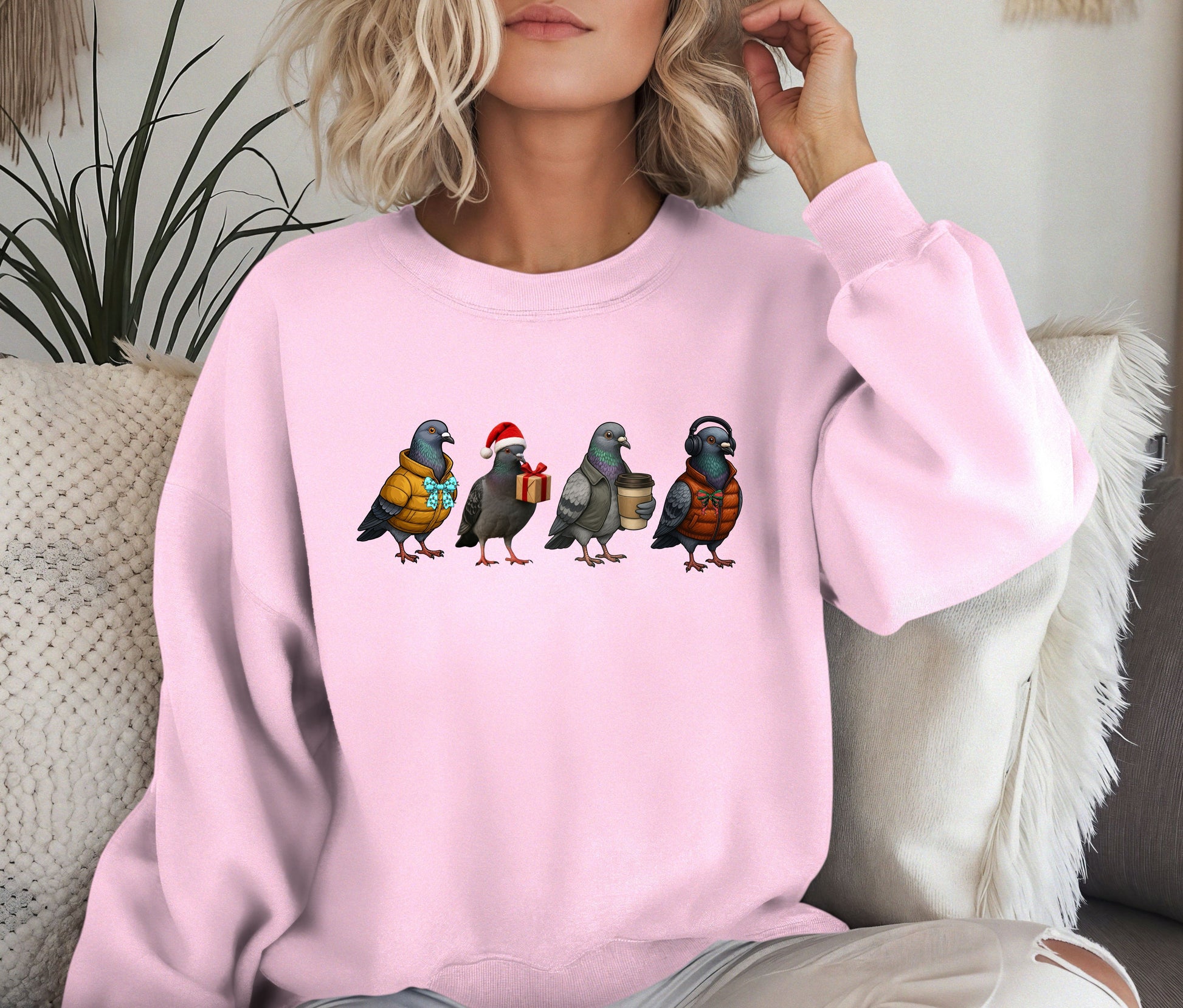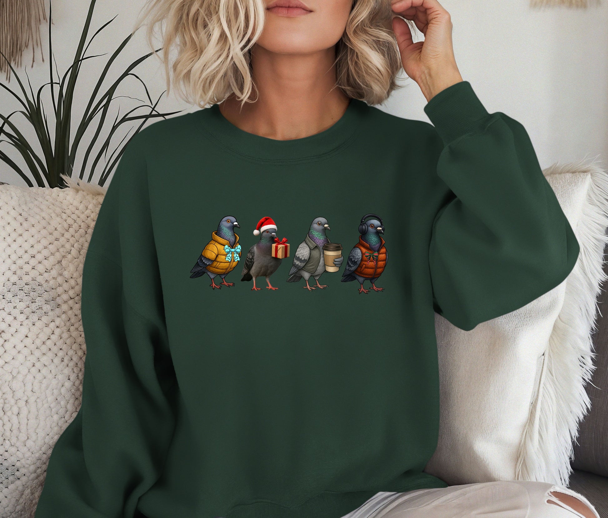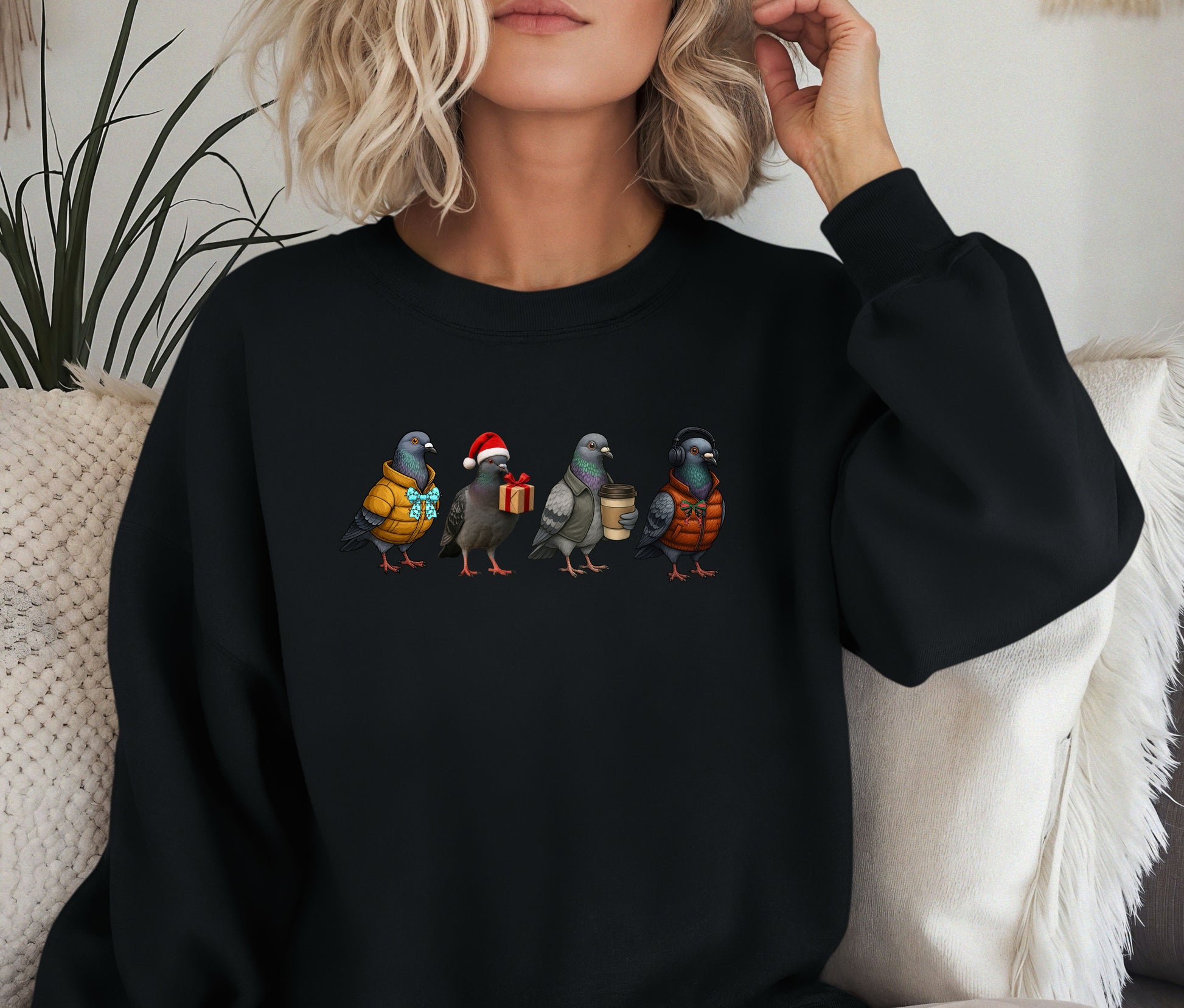 From the pigeon in a puffer jacket to the one wearing headphones, holding coffee, or carrying a Christmas gift β€” this unique design is the perfect mix of humor, comfort, and festive cheer.