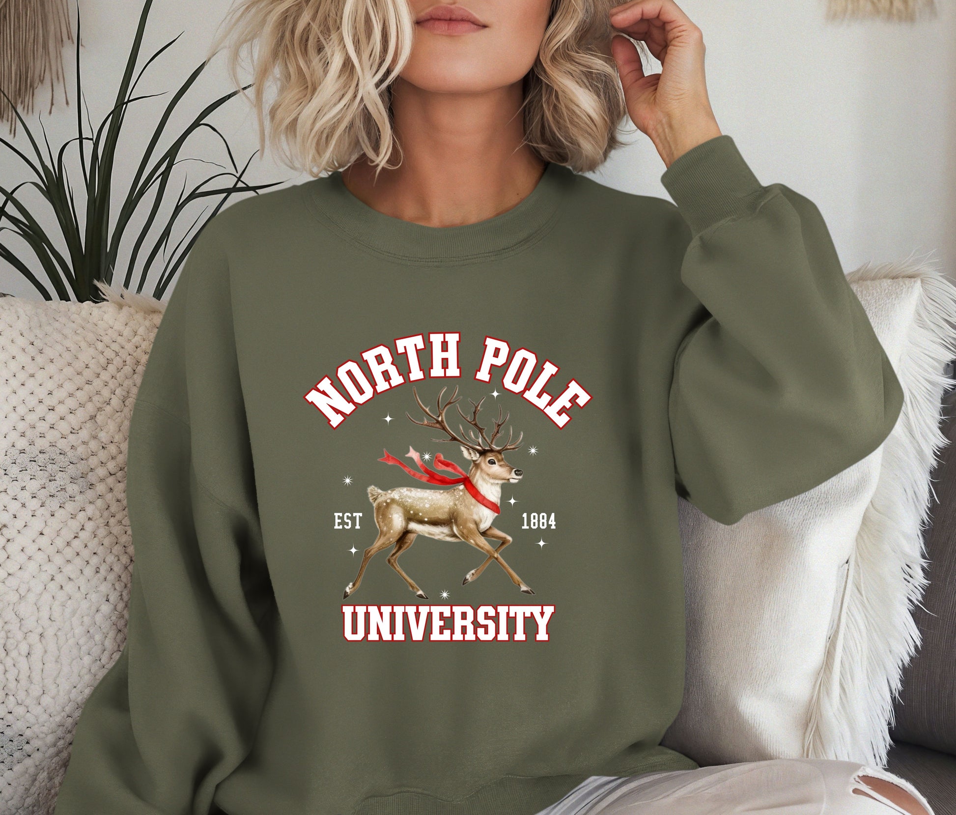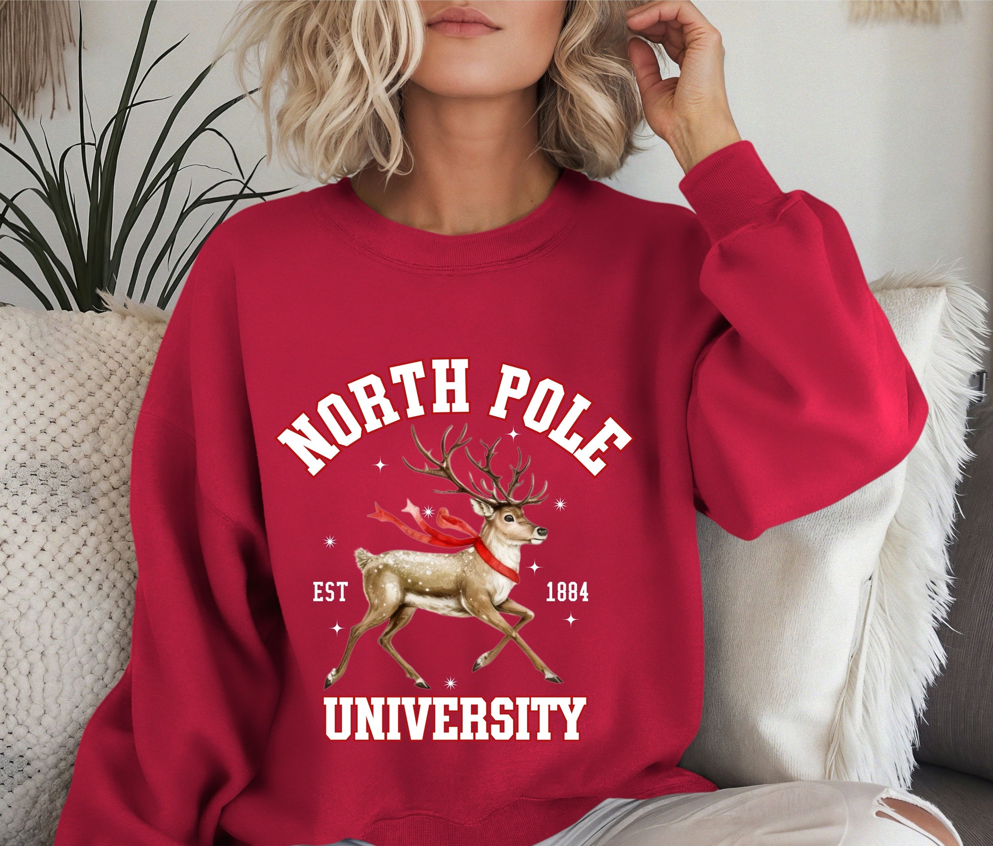 Bring classic Christmas charm to your winter wardrobe with this North Pole Christmas Tree Sweatshirt!