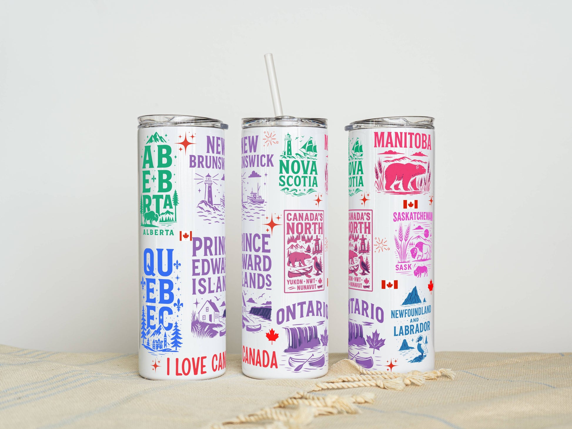 20 oz Provinces Steel Tumbler – Insulated Travel Mug with Lid & Straw | Customizable | Hot & Cold Drinkware | Gift for Him, Her, or Kids