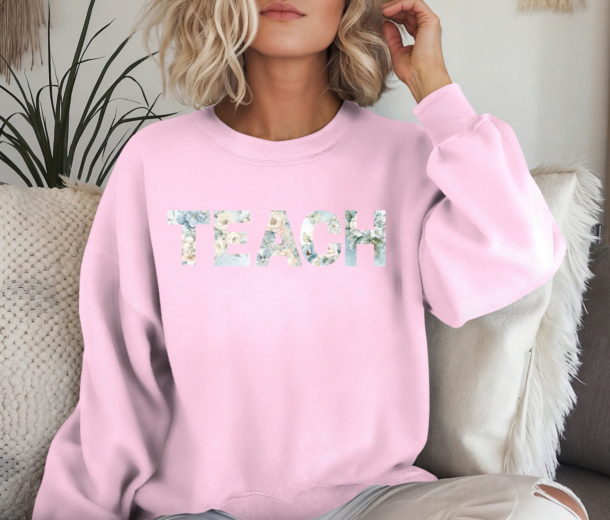 Custom TEACH Teacher Sweatshirt – Cozy Crewneck for Educators, Back to School Teacher Gift, Teacher Appreciation Shirt, Teacher Outfit Pullover