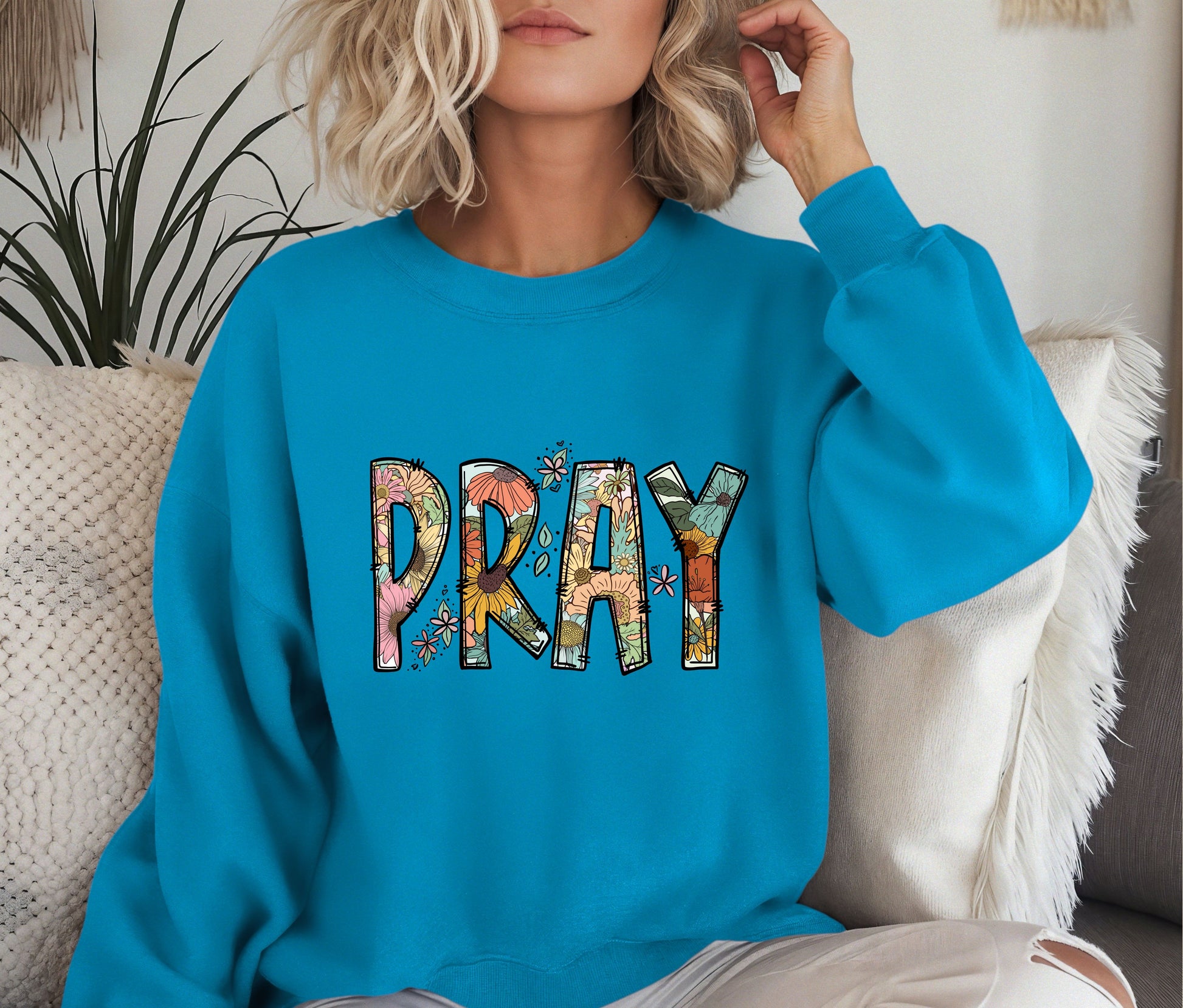 PRAY Sweatshirt β Floral Christian Crewneck, Faith-Based Pullover, Religious Inspirational Sweater, Cozy Prayer Shirt