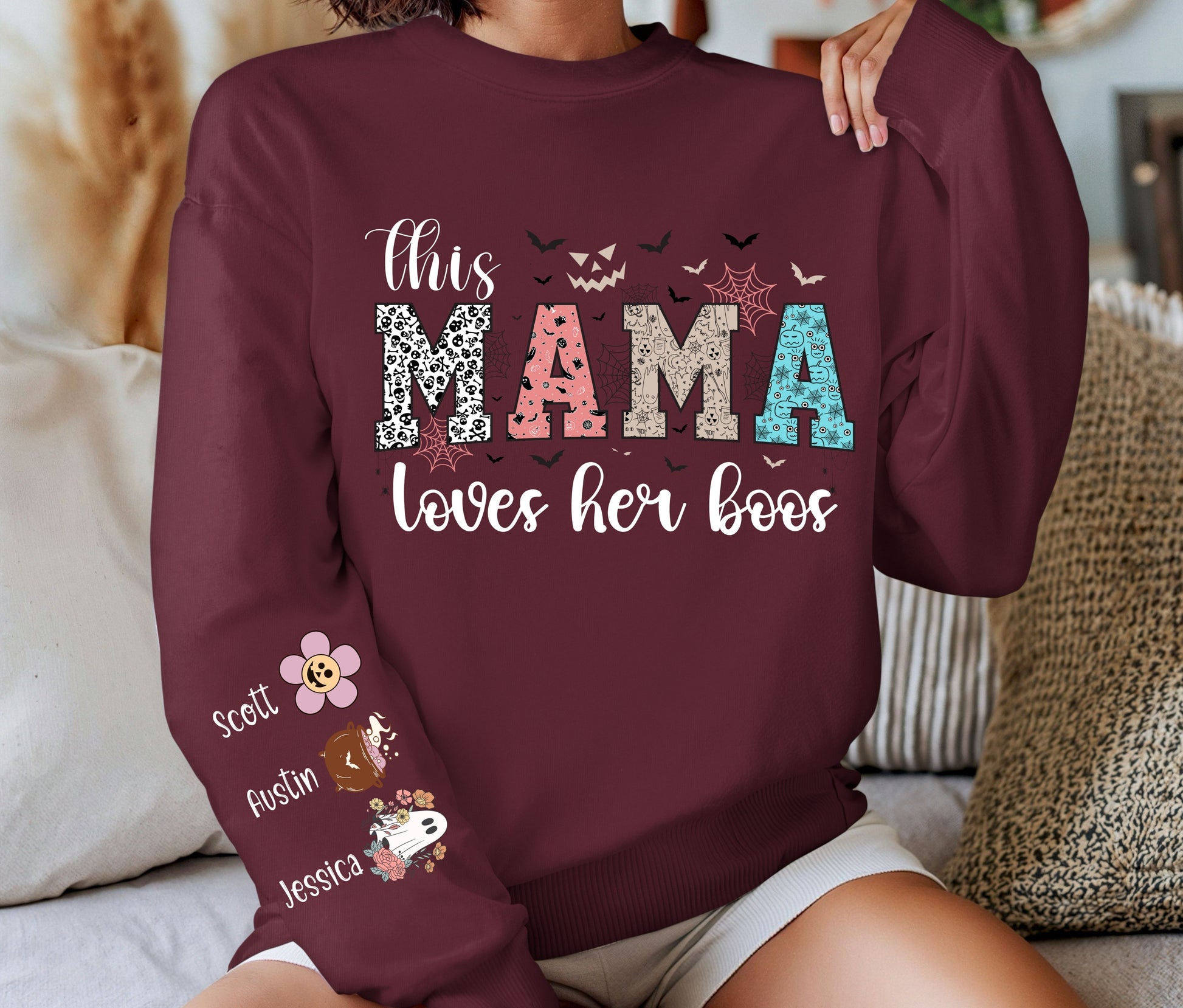 This Mama Loves Her Boos – Personalized Halloween Sweatshirt for Moms 🎃👻