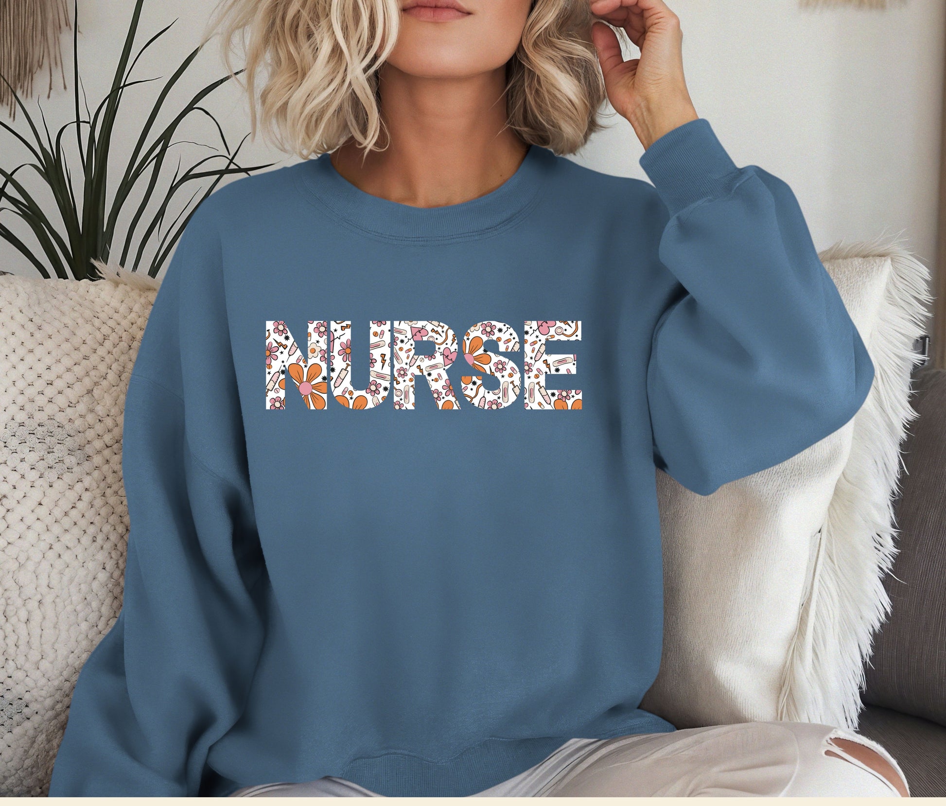 Celebrate the dedication and compassion of nurses with this NURSE Sweatshirt featuring a unique floral and medical-themed letter design. πΈπ Perfect for everyday wear, this cozy crewneck is designed to keep you comfortable during long shifts, study sessions, or relaxing at home.